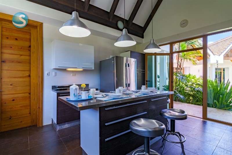 Ubicada dentro del exclusivo complejo de Guavaberry Country Club esta espectacular villa de estilo ZEN tiene una capacidad para 10 personas y todos los dormitorios con vista a la piscina, jardines y campo de golf.